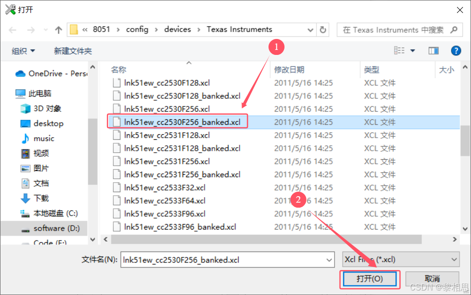在里面找到lnk51ew_cc2530F256_banked,选中,然后打开。