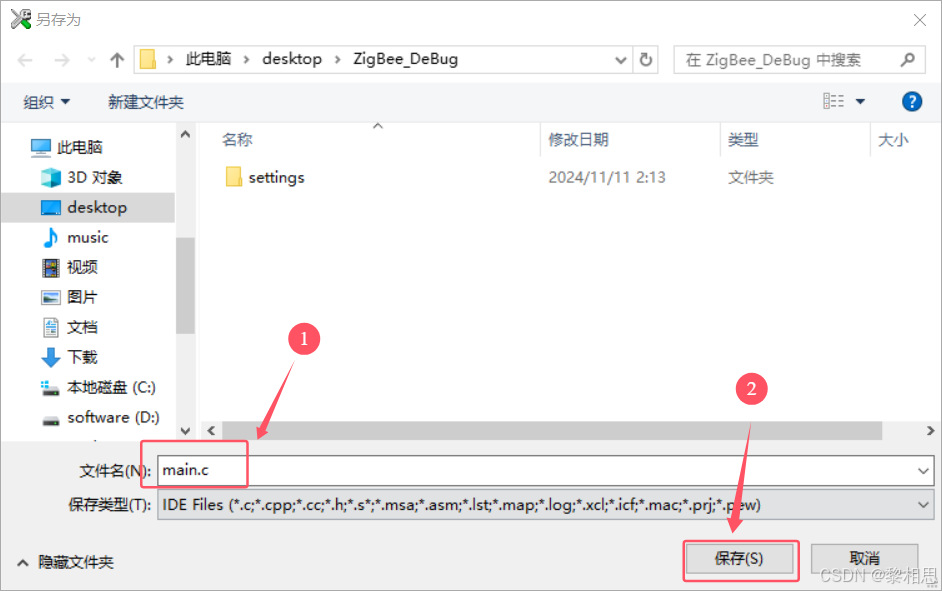 为自己要写代码的文件起个名字,以.c结尾,因为写的是C语言,如果看不到.c可以在文件夹中打开文件扩展名。然后点击保存。