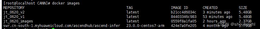 提交完成后,你可以使用以下命令查看新创建的镜像: