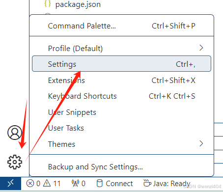 在Java:Home处,点击进入“Edit in settings.json”进行编辑设置。
