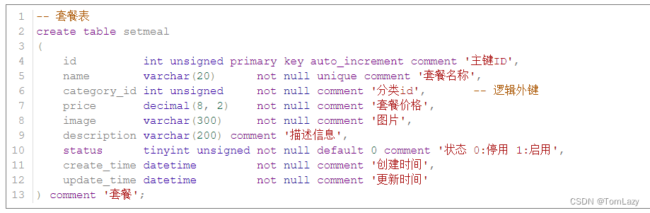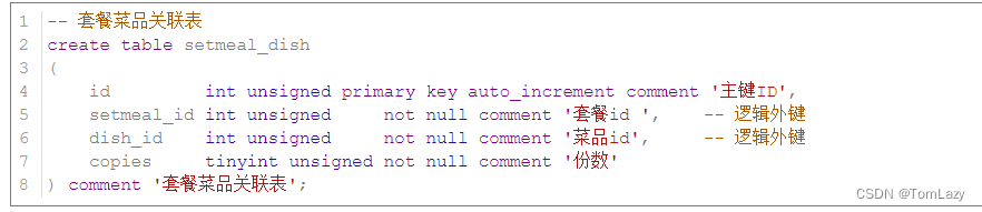 套餐菜品关联表: