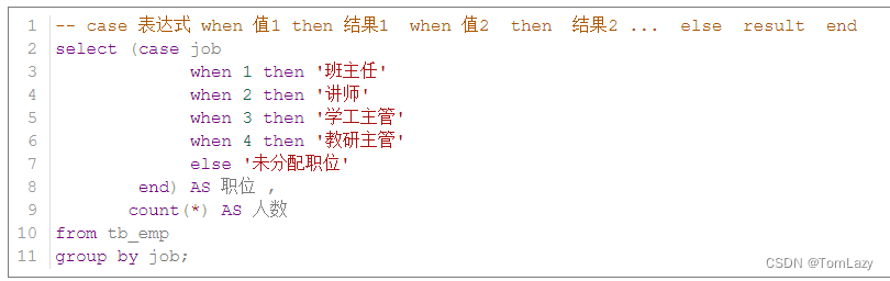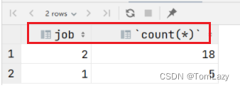 select distinct job from tb_emp; 效果展示: