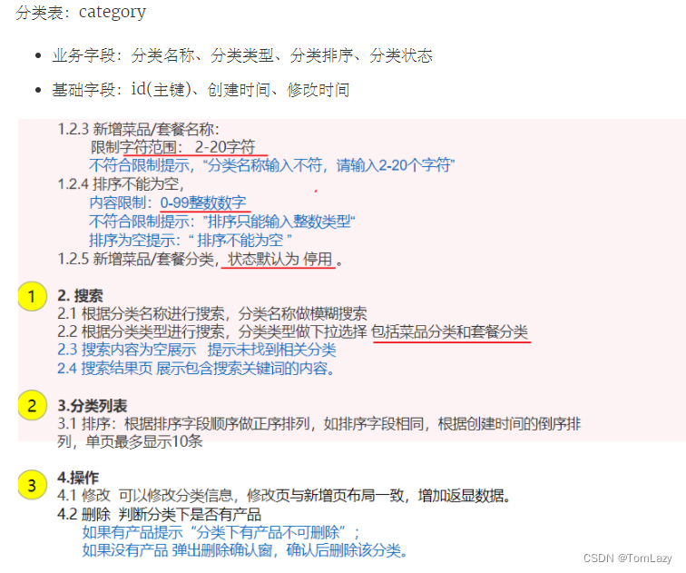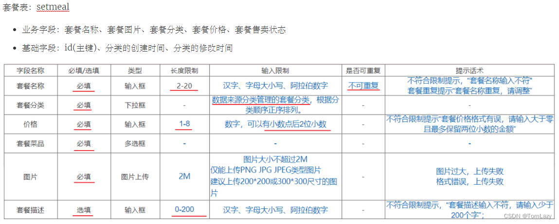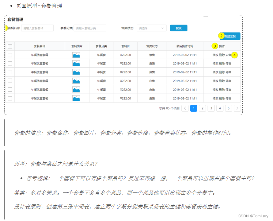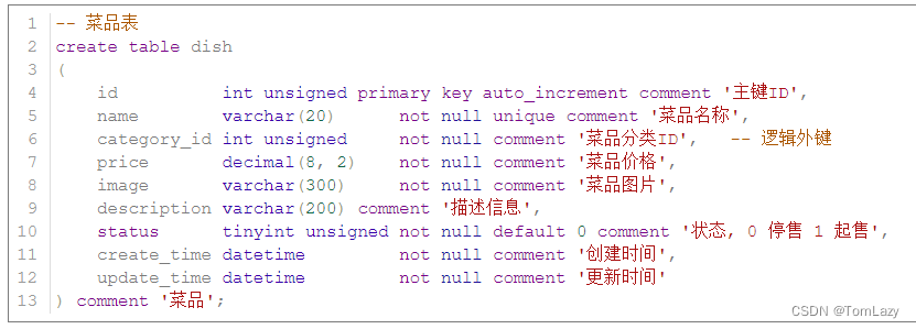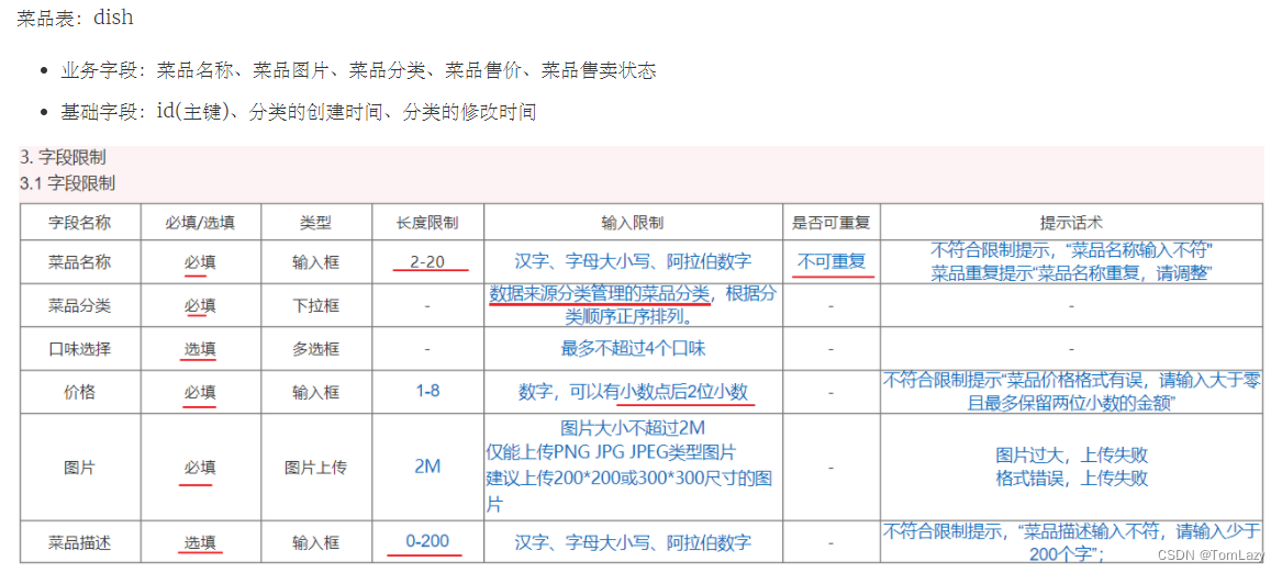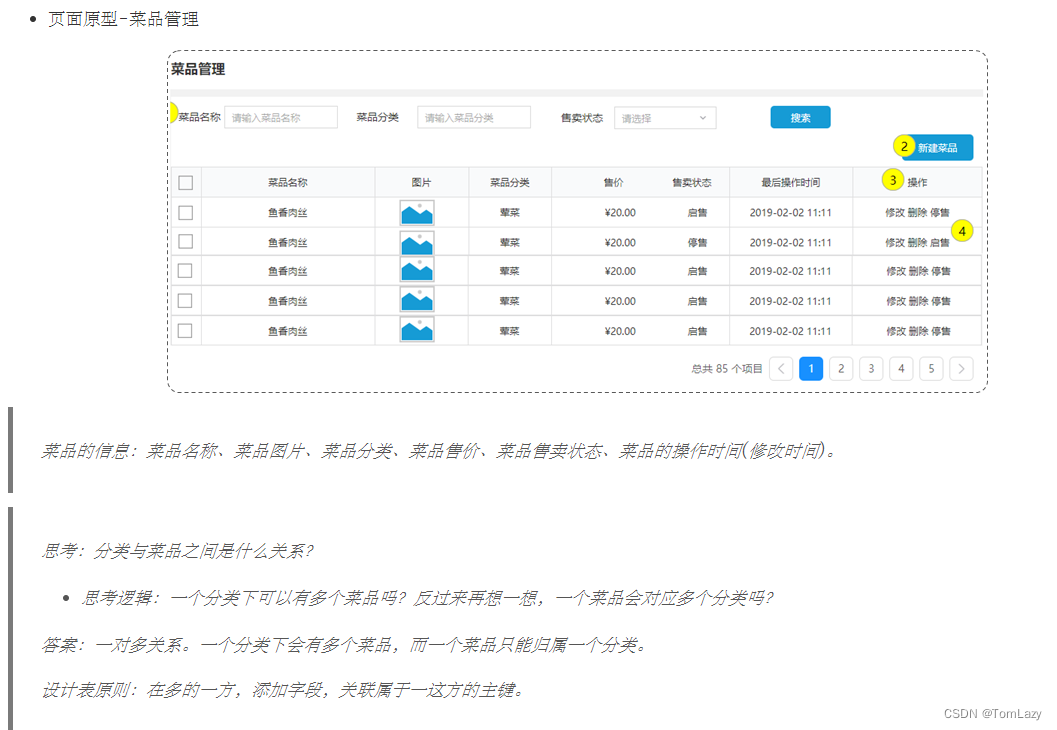菜品表: