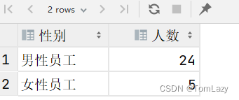 案例1:根据性别分组 , 统计男性和女性员工的数量 |