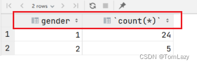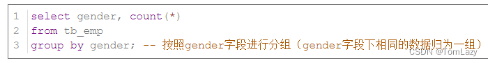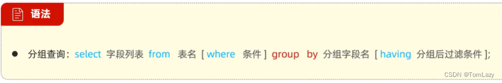 【注意】:分组查询后,select之后能够返回的字段包括两类,一类是分组字段,一类是聚合函数