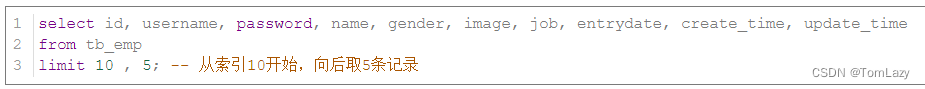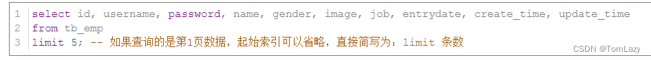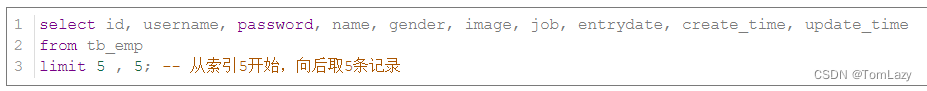 案例1:从起始索引0开始查询员工数据, 每页展示5条记录 |