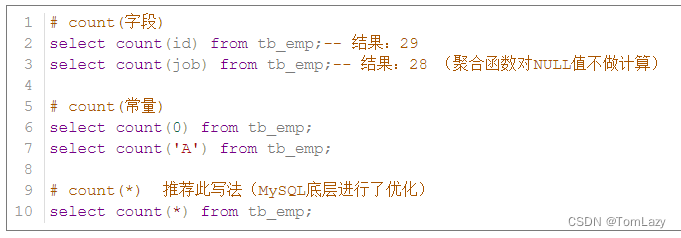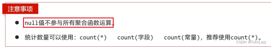 注意 : 聚合函数会忽略空值,对NULL值不作为统计。