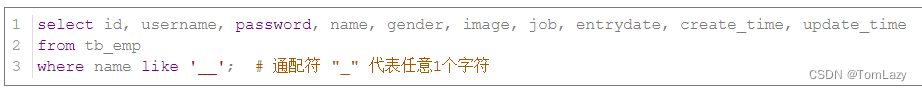 案例9:查询 姓名 为两个字的员工信息 |