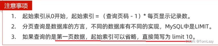 起始索引计算公式:起始索引 = (查询页码 - 1)* 每页显示记录数