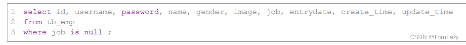 【注意】:查询为NULL的数据时,不能使用 ‘= null’,而要写成‘is null’ |