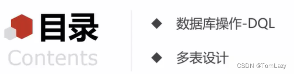 在这一章中主要会介绍数据库操作方面的内容:查询(DQL语句) - DQL语句-单表操作 - DQL语句-多表操作 |