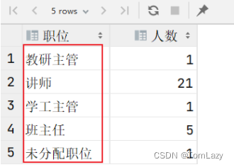 案例2-2 员工职位统计: |