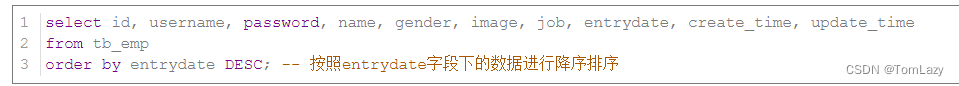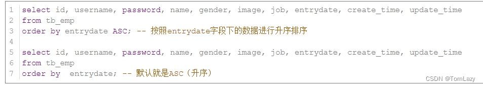 案例1:根据入职时间, 对员工进行升序排序 |