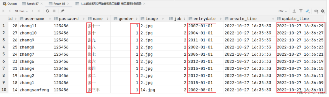 select name,entrydate from tb_emp; 效果展示: