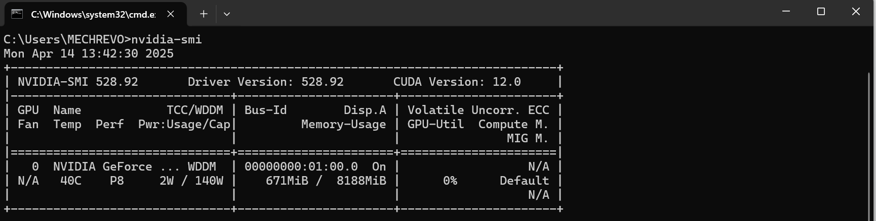 可以看到CUDA Version是12.0,说明我可以下载的CUDA版本要低于12.0即可,CUDA和CUDNN就是调用GPU需要用到的工具,安装Pytorch-gpu版本时直接用命令行就可以一起安装,无需手动安装。