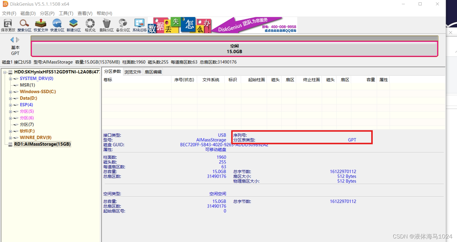 1、使用DG分区助手将U盘的硬盘分区形式改为GPT格式