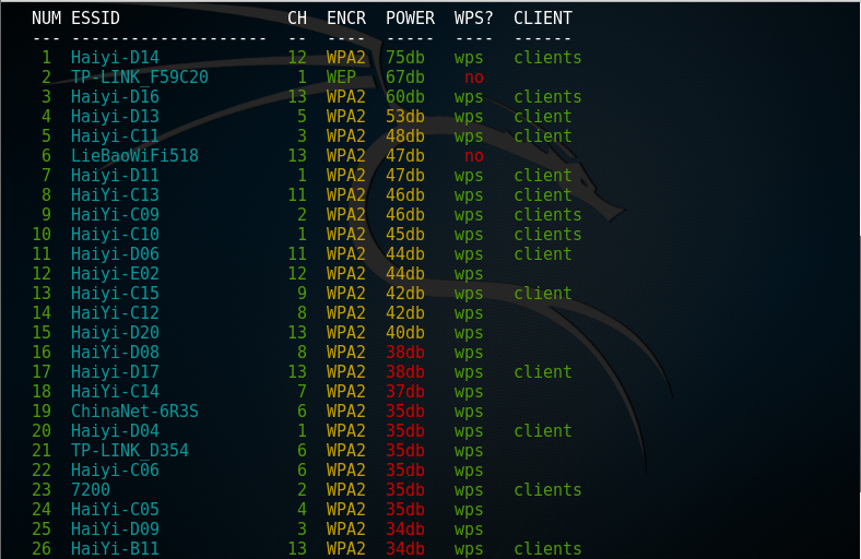 - 通过信号强度(dB)对目标进行排序; 首先破解最近的接入点