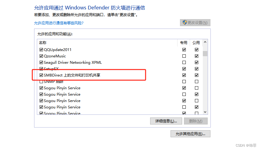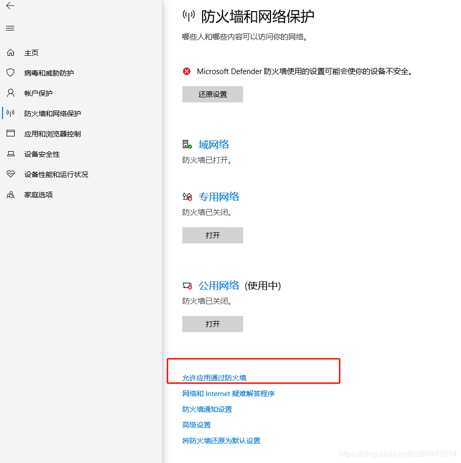 打开 控制面板--更新和安全--windows安全中心--防火墙和网络保护--允许应用通过防火墙(下面)