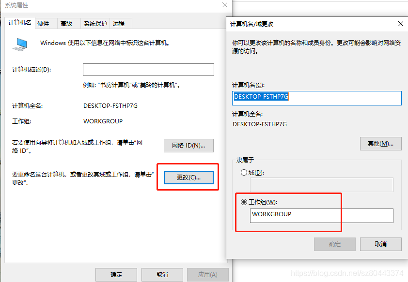 (5)确定共享机和连接机在一个工作组