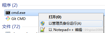 1,使用管理员权限打开命令提示符(注意不是运行)。