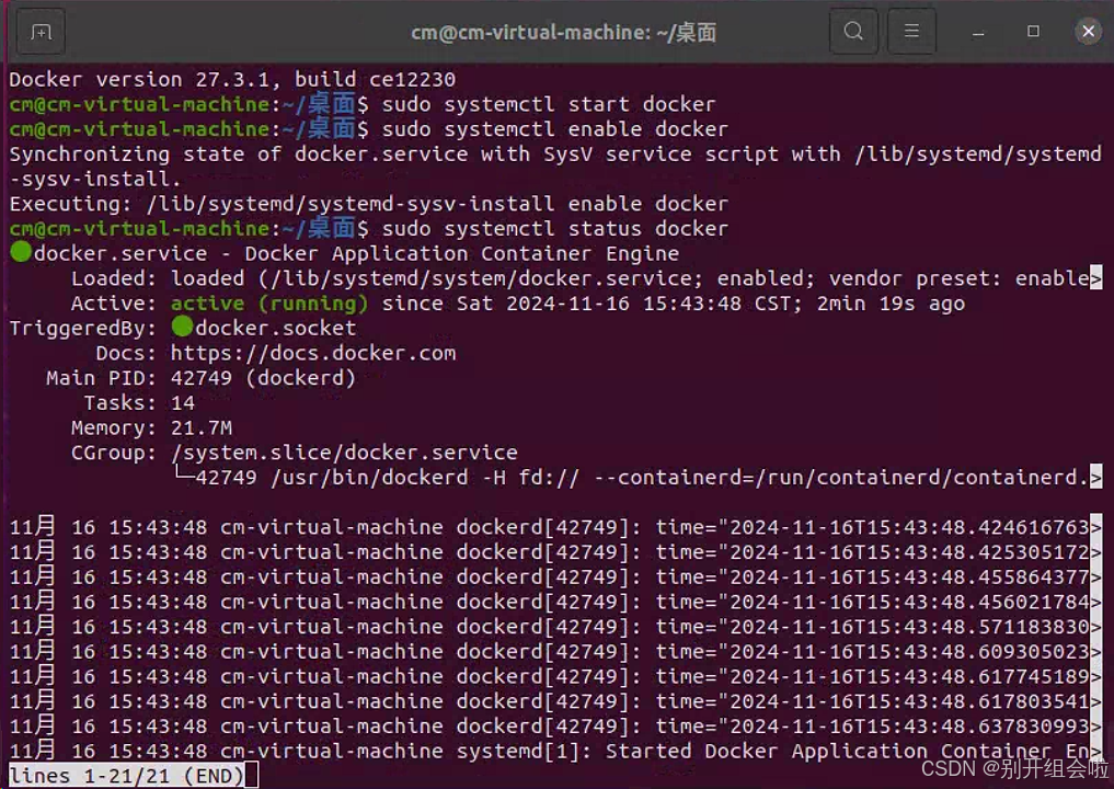 8、确认 Docker 服务是否正常运行:
