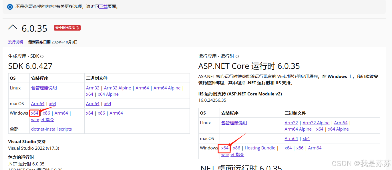 第一步:在官网下载对应版本的SDK+Runtime .NET 下载(Linux、macOS 和 Windows)