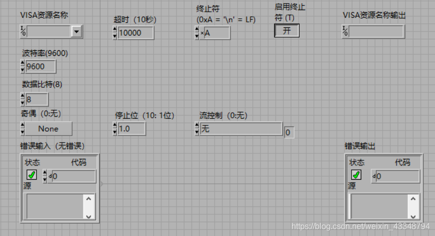3.添加串口参数,添加VISA资源名称和波特率。