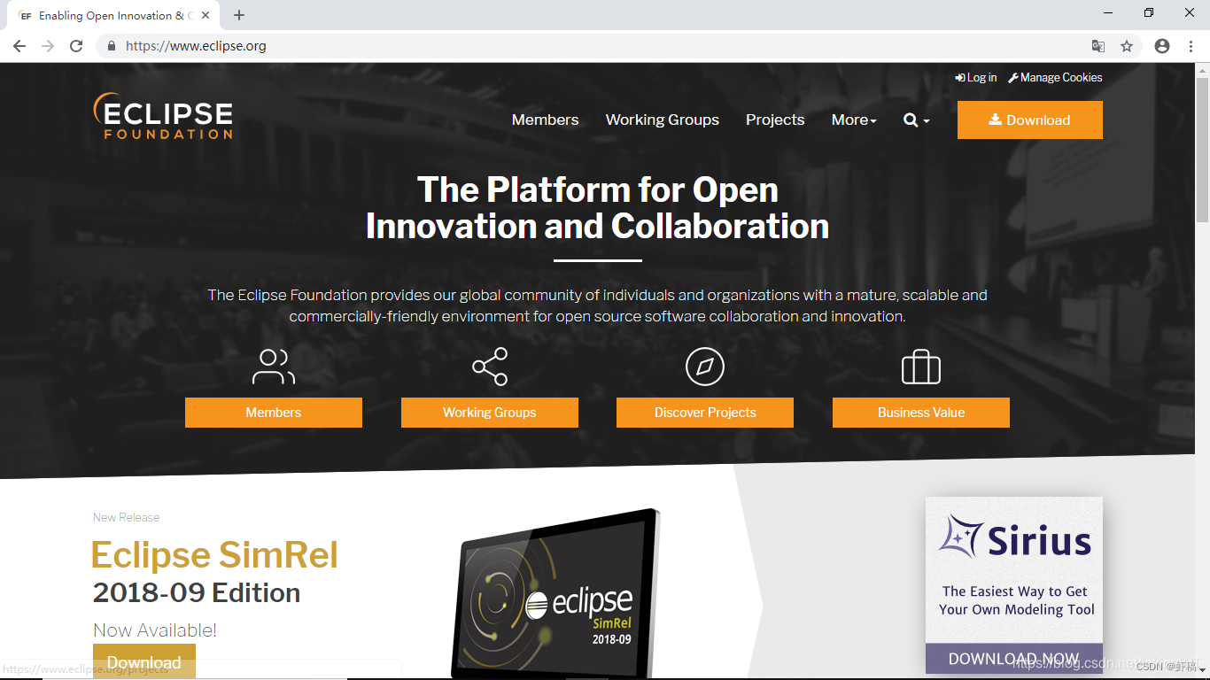 1、打开Eclipse官网,默认进入官网首页,官网地址为:https://www.eclipse.org/