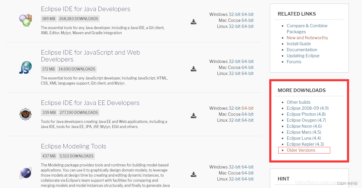 (转载)官网下载Eclipse(包含历史版本及该版本的子版本)