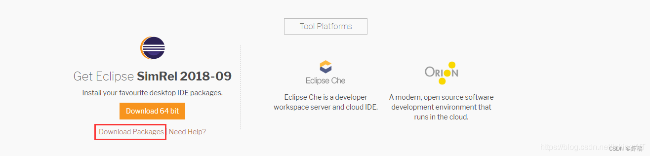 3、下载页面默认为最新版本的Eclispe下载链接,忽略他,点击 Download Packages(下载包)进入下一级页面
