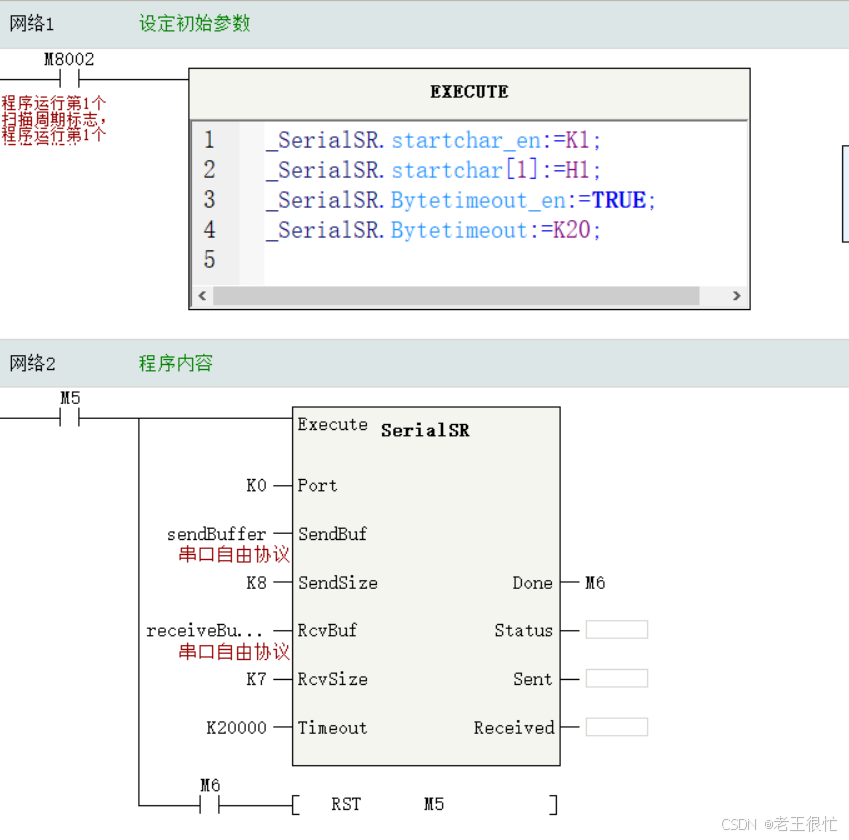 上方程序还有一个需要注意的点:SerialSR中Done管脚并不是发送完成为ON,而是接收完成为ON并保持,如果没有接收成功则不为ON,且该指令管脚Execute下次为ON时Done管脚自动为OFF。