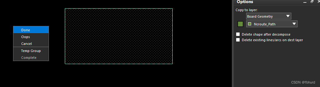 在导入design ouline时用shape导入不会有什么问题,但是用shape导入outline层,就会提示warning。shape默认是闭合图形,line可以不是闭合的,可以认为闭合的line和shape没有什么区别,只是在操作两个对象的时候有稍微一点点不同。相同的操作,decompose shape改成 compose shape。第一种方法: 点击shape-select shape