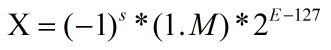 【符号位S】、【阶码E】、【尾数M】与该数所表示数值的关系见以下公式: