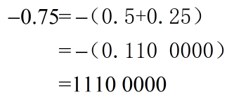 eg2:使用8位定点数表示小数-0.75(规定8位定点数由1个符号位,0个整数位,7个小数位组成)
