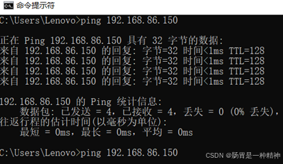 5.打开cmd,输入 ping +IP地址,回车,PING通,完成驱动移植