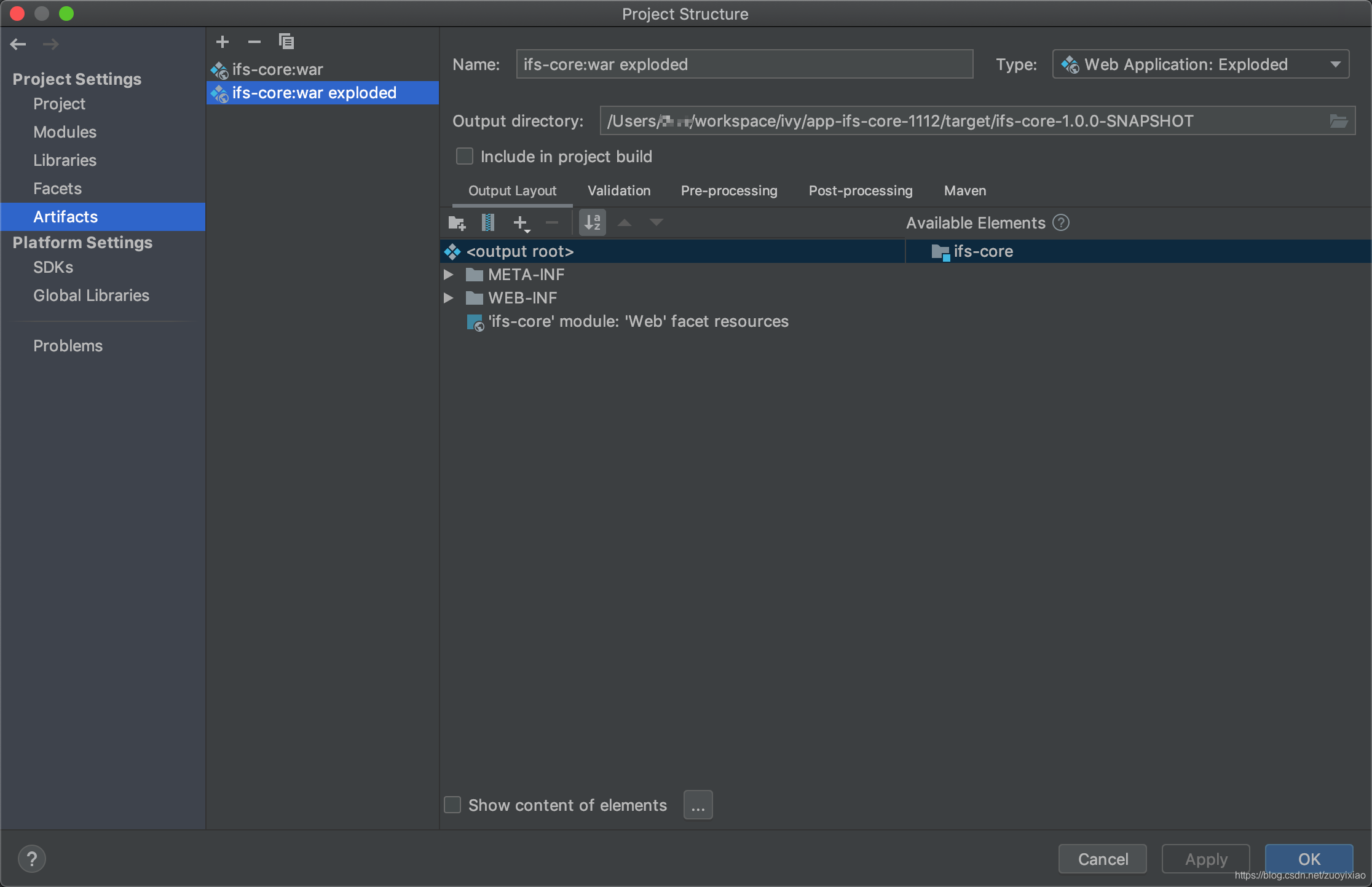 修改Output directory路径,指到本地tomcat的webapps/<项目名>。