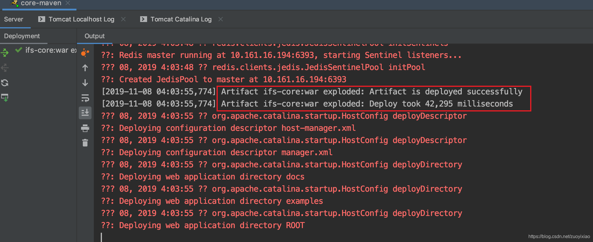 IDEA中用tomcat启动项目war包日志显示部署成功,但访问项目却一直404,在本地tomcat的webapps目录下确实也没有项目。成功日志如下:检查idea中tomcat配置如下图:默认情况下,tomcat会把项目部署在target目录下,不会放到自己的webapps中。解决方法:网上搜索方法很多,但各种尝试之后,本人这里只有以下方法可行:修改Outp...