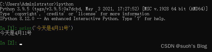 安装成功之后,输入ipython ,可以看到确实比python的界面好看多了