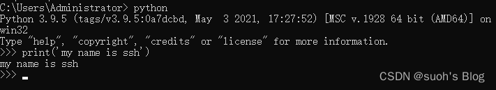输入python,切换到python终端,然后输入print命令回车即可输出