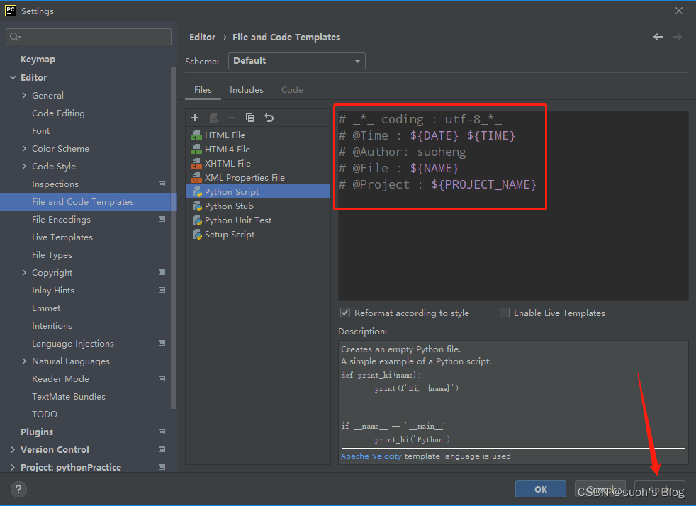 补充:我们想每次在新建的py文件开头都加上个人信息注释,例如作者、时间等。如何实现呢?