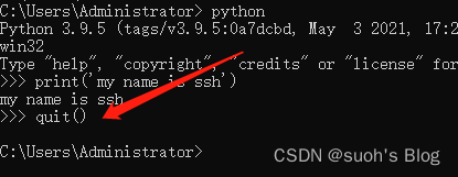 三种方式:exit() 、quit()、快捷键 ctrl+z 回车