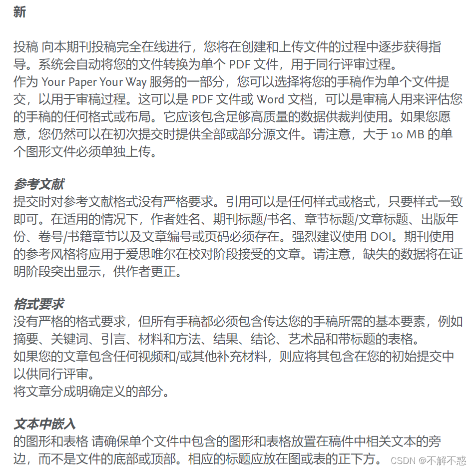 期刊的作者指南里有说无固定格式要求,但一般应包含哪些内容。现在也还没投,也只是猜测。