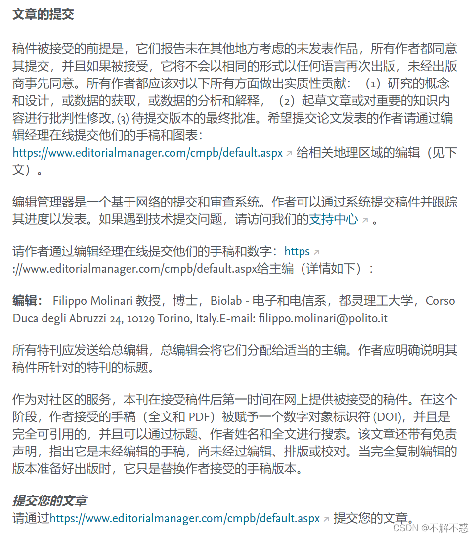 1.官网:Computer Methods and Programs in Biomedicine - Journal - Elsevier2.投稿网站:editorialmanager.com/cmpb/default1.aspx3.作者指南(投稿介绍)Guide for authors - Computer Methods and Programs in Biomedicine - ISSN