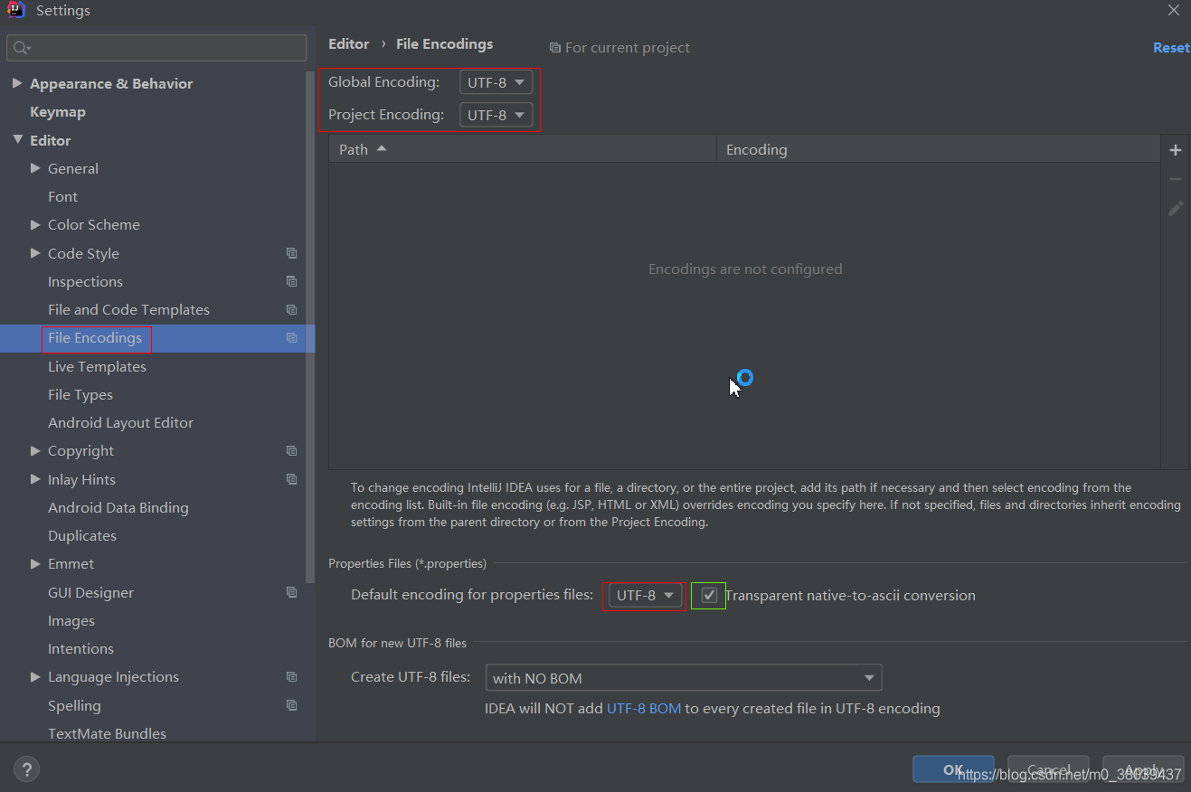 Properties 文件, Transparent native-to-ascii conversion 主要用于转换 ascii,一般都要勾选,不然Properties注释都是乱码。