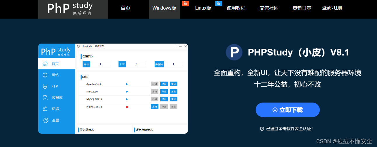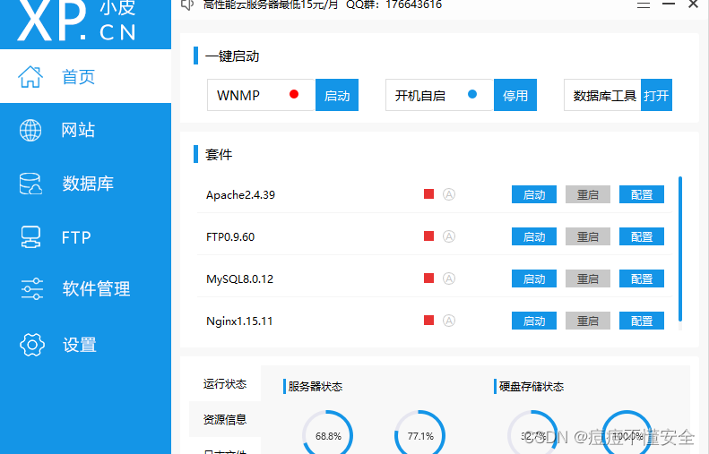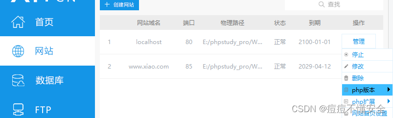 1、确保你的小皮面板下载了mysql和apache或者nginx