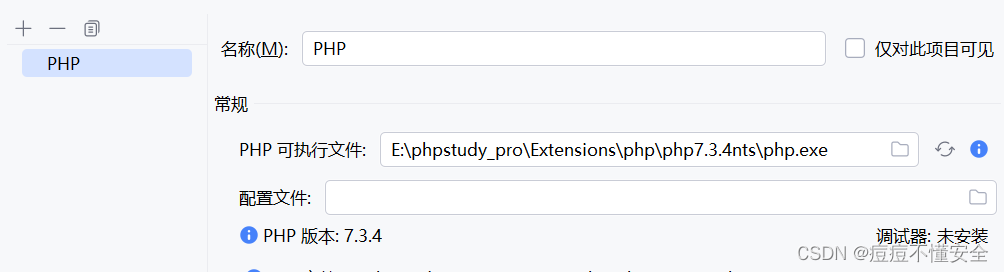 7、这里点进来直接点击左上角+号(名字随便取,可执行文件就是你小皮目录下的小皮环境)