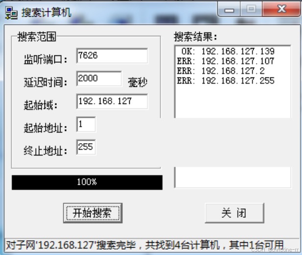 ① 在冰河木马主界面上,点击“搜索计算机”,我们发现 IP 地址为 192.168.112.135 的木马服务端已启动。
