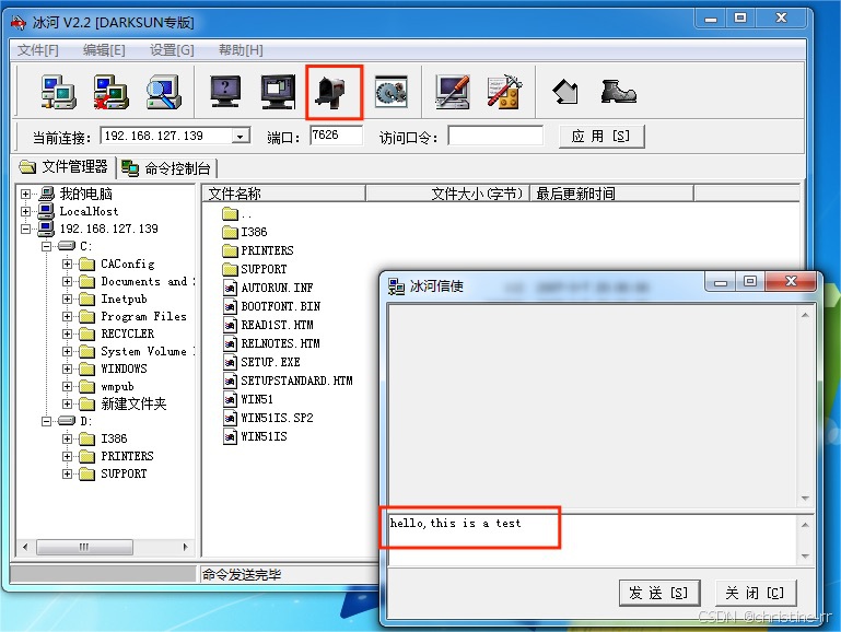 - 使用“冰河信使”向靶机发送消息