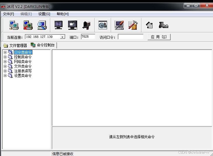 - 在“命令控制台”中,可以进一步控制目标机器