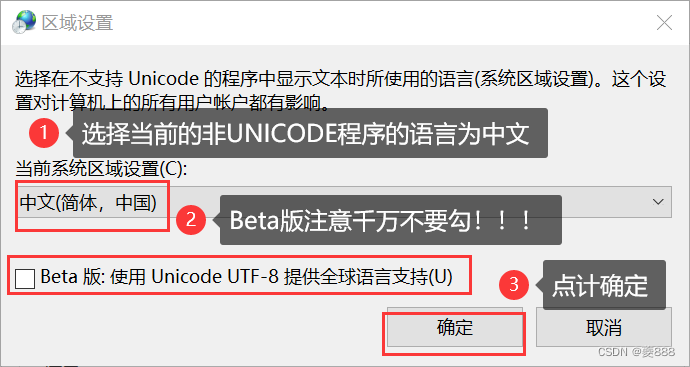 6.选择并确定当前的非UNICODE程序的语言为中文简体